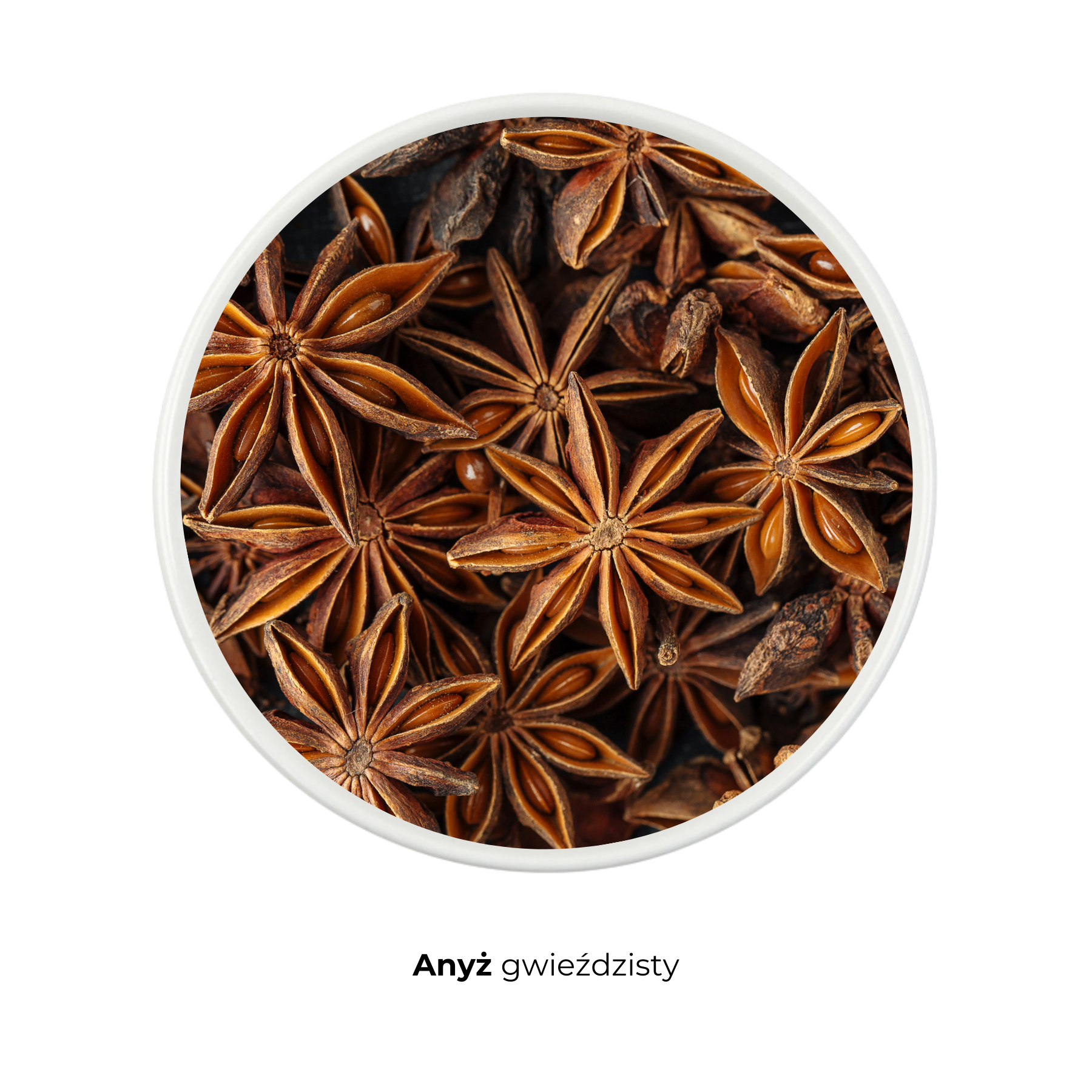 Anyż gwiazdki (Illicium verum) to wyjątkowa przyprawa o charakterystycznym kształcie ośmioramiennej gwiazdy, pochodząca z Azji Południowo-Wschodniej. Zachwyca intensywnym, słodko-korzennym aromatem z wyraźną nutą lukrecji i głębokim, rozgrzewającym smakiem.