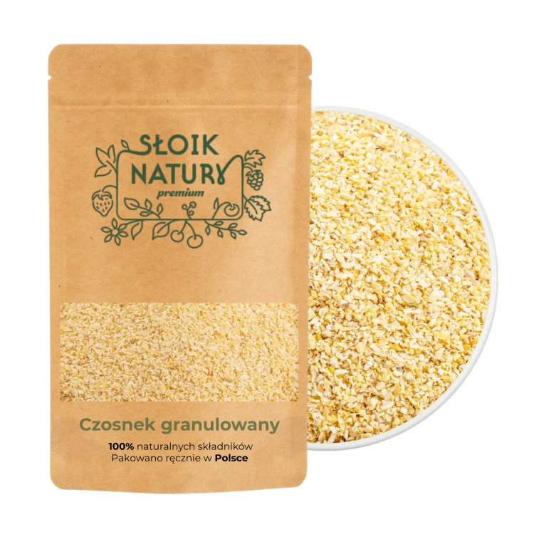 Czosnek granulowany to niezastąpiona przyprawa w każdej kuchni, która łączy w sobie pełnię naturalnego smaku świeżego czosnku z wyjątkową wygodą użycia. Powstaje przez staranne suszenie i rozdrobnienie ząbków czosnku, dzięki czemu zachowuje swoje właściwości smakowe, aromatyczne i odżywcze, jednocześnie oferując o wiele dłuższy czas przechowywania i łatwiejsze zastosowanie w codziennym gotowaniu.