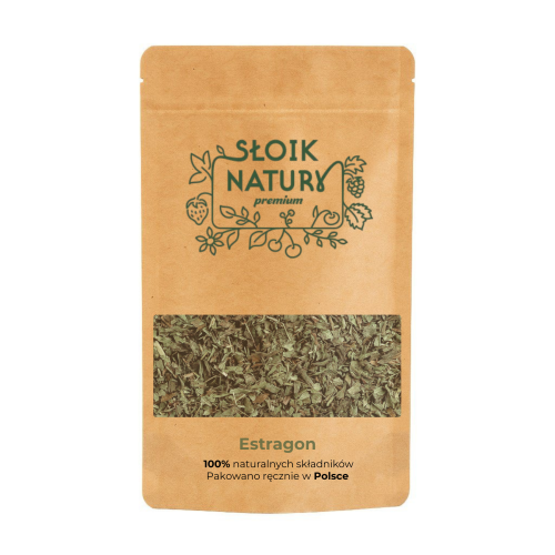 Estragon pakujemy w praktyczną torebkę z zamknięciem strunowym, która skutecznie chroni przyprawę przed wilgocią, światłem i utratą aromatu. Torebka jest wielokrotnego użytku – wystarczy zamknąć ją po użyciu, aby zachować świeżość na dłużej.
