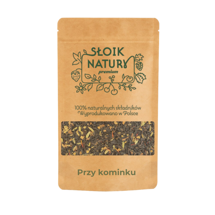 Zanurz się w ciepły, kojący aromat herbaty „Przy kominku”, stworzonej z myślą o chwilach relaksu podczas chłodnych, nastrojowych wieczorów. Ta wyjątkowa kompozycja opiera się na wysokiej jakości czarnej herbacie, której głęboki smak został wzbogacony starannie dobranymi dodatkami rozgrzewającymi ciało i zmysły. W mieszance znajdziesz imbir, jabłko, koper włoski oraz cynamon, które tworzą harmonijną i naturalnie słodkawą paletę aromatów. Subtelny anyż dodaje naparowi delikatnej ziołowej nuty, zaś płatki szafranu wprowadzają szlachetną głębię i lekko miodowy posmak. Całość dopełniają naturalne aromaty jabłka i cynamonu, dzięki którym każdy łyk staje się pełen ciepła i domowego przytulnego klimatu. To idealna herbata dla osób, które cenią sobie wyjątkowe połączenie klasycznego smaku czarnej herbaty z intensywnym, rozgrzewającym bukietem przypraw. Doskonała do picia wieczorami, w towarzystwie ulubionej książki, koca i… oczywiście kominka.