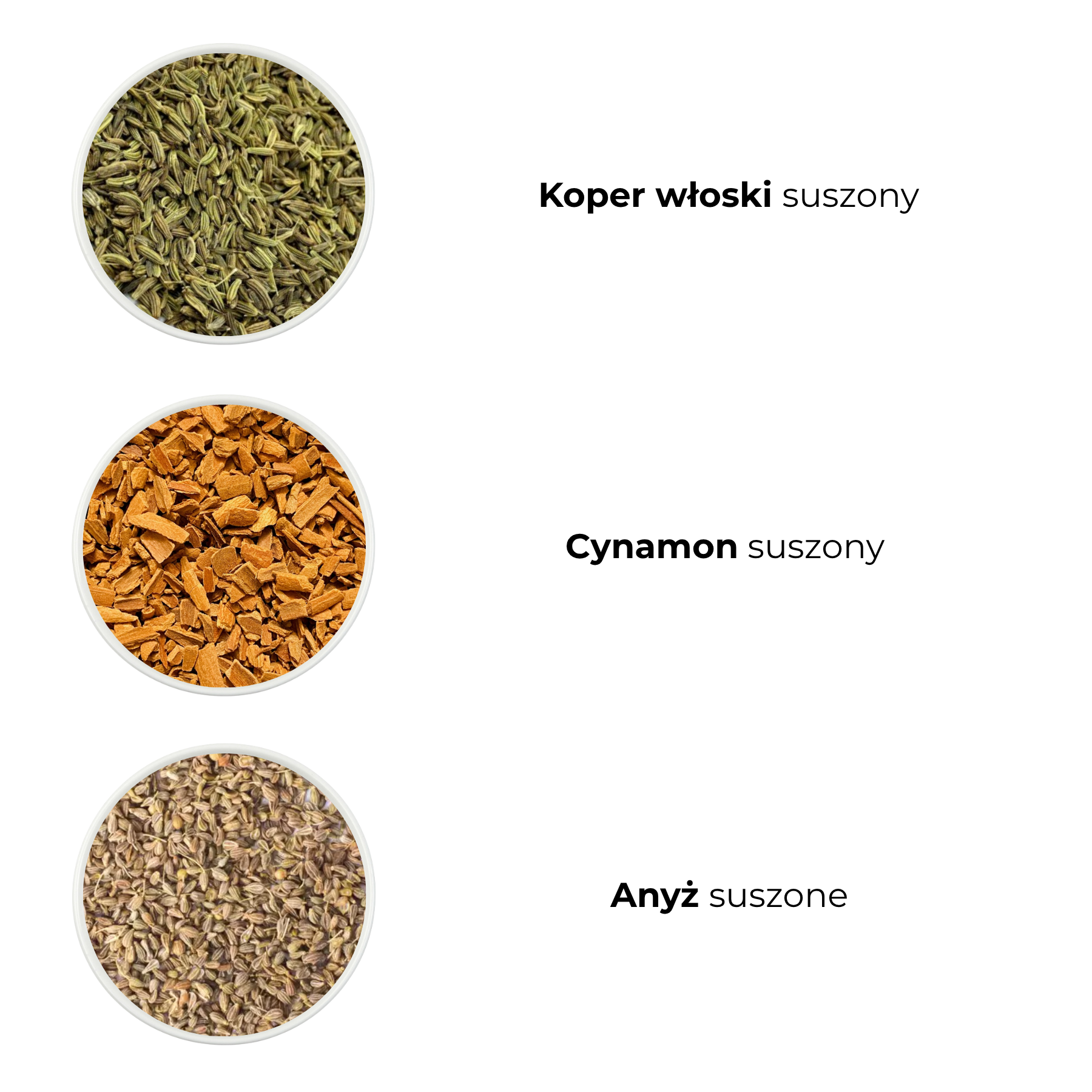 Zanurz się w ciepły, kojący aromat herbaty „Przy kominku”, stworzonej z myślą o chwilach relaksu podczas chłodnych, nastrojowych wieczorów. Ta wyjątkowa kompozycja opiera się na wysokiej jakości czarnej herbacie, której głęboki smak został wzbogacony starannie dobranymi dodatkami rozgrzewającymi ciało i zmysły. W mieszance znajdziesz imbir, jabłko, koper włoski oraz cynamon, które tworzą harmonijną i naturalnie słodkawą paletę aromatów. Subtelny anyż dodaje naparowi delikatnej ziołowej nuty, zaś płatki szafranu wprowadzają szlachetną głębię i lekko miodowy posmak. Całość dopełniają naturalne aromaty jabłka i cynamonu, dzięki którym każdy łyk staje się pełen ciepła i domowego przytulnego klimatu. To idealna herbata dla osób, które cenią sobie wyjątkowe połączenie klasycznego smaku czarnej herbaty z intensywnym, rozgrzewającym bukietem przypraw. Doskonała do picia wieczorami, w towarzystwie ulubionej książki, koca i… oczywiście kominka.
