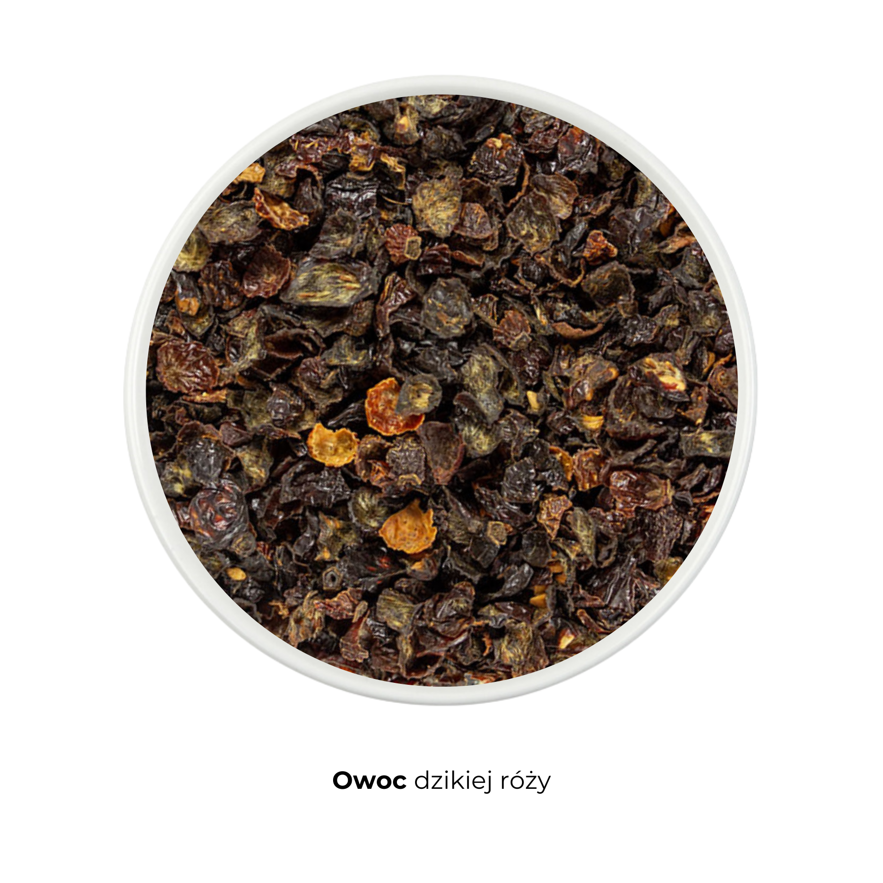 Dzika róża (owoc) – bogate źródło witaminy C, wspomaga odporność i działa przeciwzapalnie.