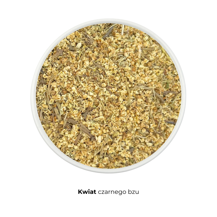 Bez czarny (kwiat) – działa przeciwwirusowo i immunostymulująco, wspiera odkrztuszanie.