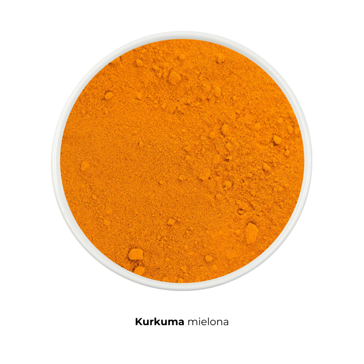Naturalny skład – 100% suszony korzeń kurkumy, bez dodatków chemicznych i konserwantów.
