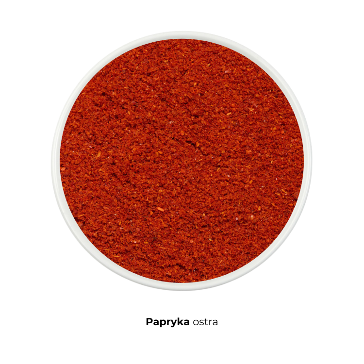 Papryka ostra mielona to przyprawa powstająca z wysokogatunkowej, czerwonej papryki chili, która po dokładnym suszeniu zostaje drobno zmielona, zachowując swoją naturalną ostrość, barwę i aromatyczną głębię. To produkt w 100% naturalny, bez dodatku konserwantów, barwników czy wzmacniaczy smaku.