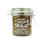 Przyprawa została zamknięta w szklanym słoiku z klamrą, który nie tylko pięknie prezentuje się w kuchni, ale przede wszystkim chroni mieszankę przed utratą aromatu i wilgocią. Dzięki szczelnemu zamknięciu przyprawa długo zachowuje świeżość i intensywność smaku.