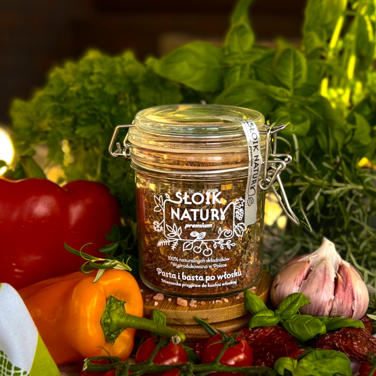 Poczuj smak i aromat słonecznej Italii bez wychodzenia z domu! “Pasta i Basta” to wyjątkowa mieszanka starannie wyselekcjonowanych ziół i przypraw, które są sercem włoskiej kuchni. Dzięki niej w kilka chwil wyczarujesz dania pełne aromatu – od klasycznych makaronów i pizzy, po sałatki, sosy i pieczywo w stylu śródziemnomorskim.