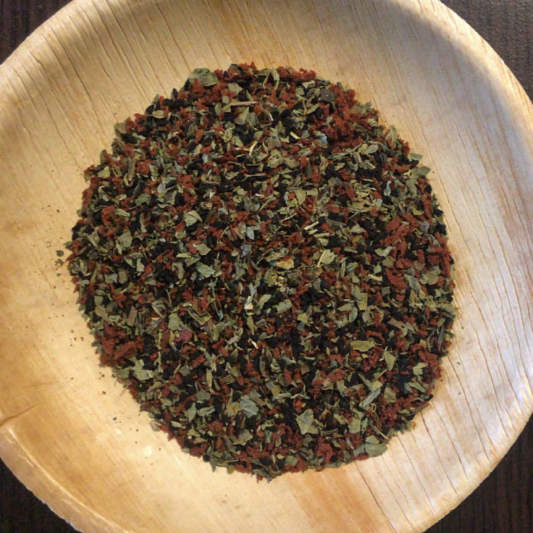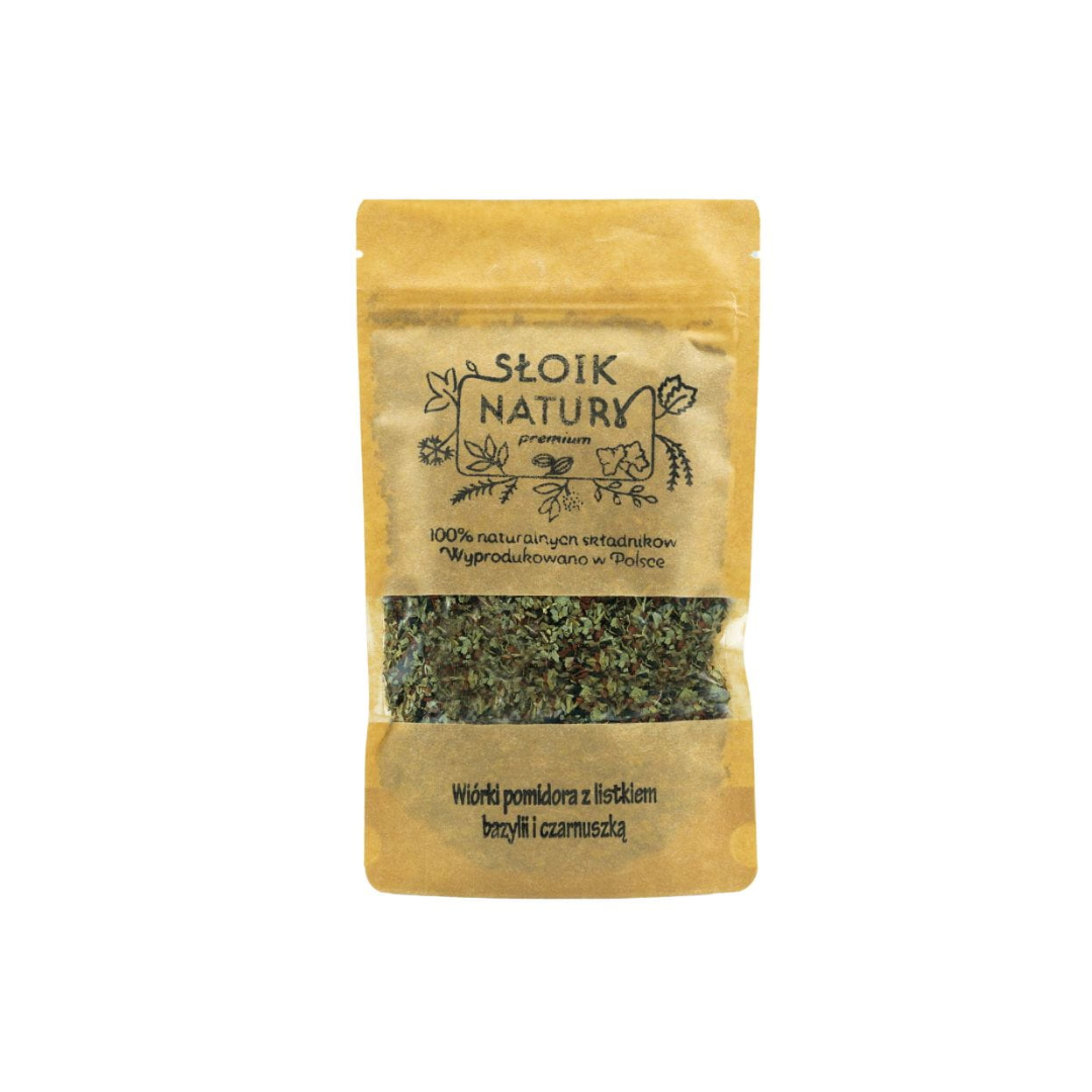 wiórki pomidora, bazylia, czarnuszka.