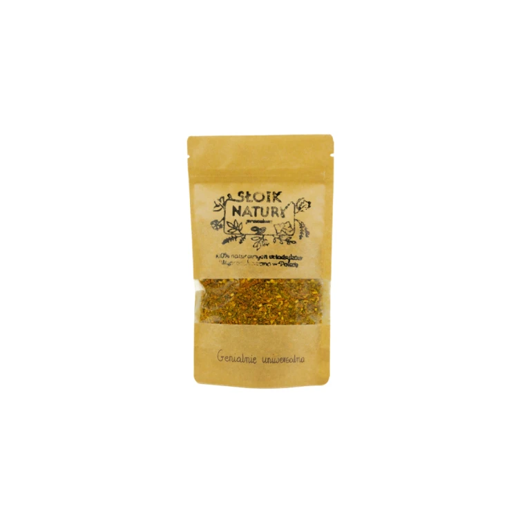 To absolutne must have w każdej kuchni. Starannie skomponowana mieszanka przypraw została opracowana tak, aby zastąpić popularne mieszanki „uniwersalne”, często zawierające glutaminian sodu i sztuczne dodatki.