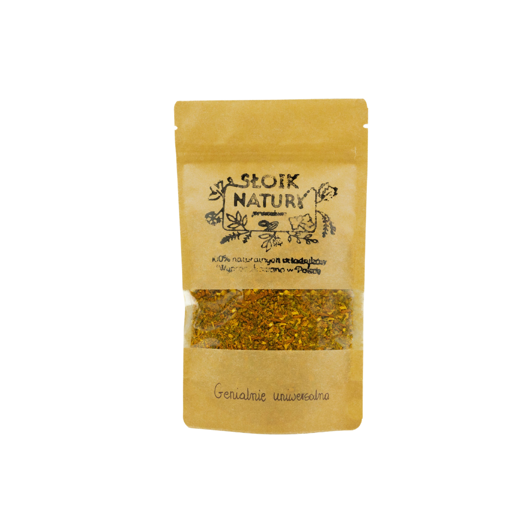 To absolutne must have w każdej kuchni. Starannie skomponowana mieszanka przypraw została opracowana tak, aby zastąpić popularne mieszanki „uniwersalne”, często zawierające glutaminian sodu i sztuczne dodatki.