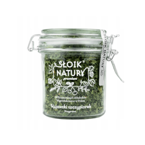 Szczypiorek pakujemy w szczelny, szklany słoik z klamrą, który skutecznie chroni przed wilgocią, światłem i utratą aromatu. Dzięki temu zachowuje swój intensywny zapach i smak przez długi czas. Po otwarciu przechowuj w suchym i chłodnym miejscu, z dala od promieni słonecznych.