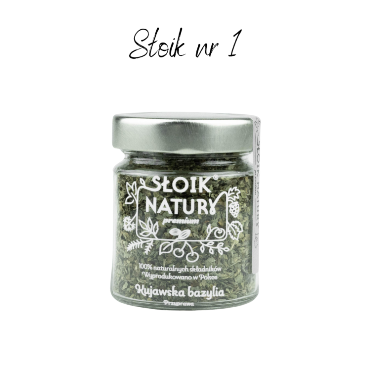 Bazylia Kujawska 30 g – lekka, świeża nuta, doskonała do dań śródziemnomorskich.
