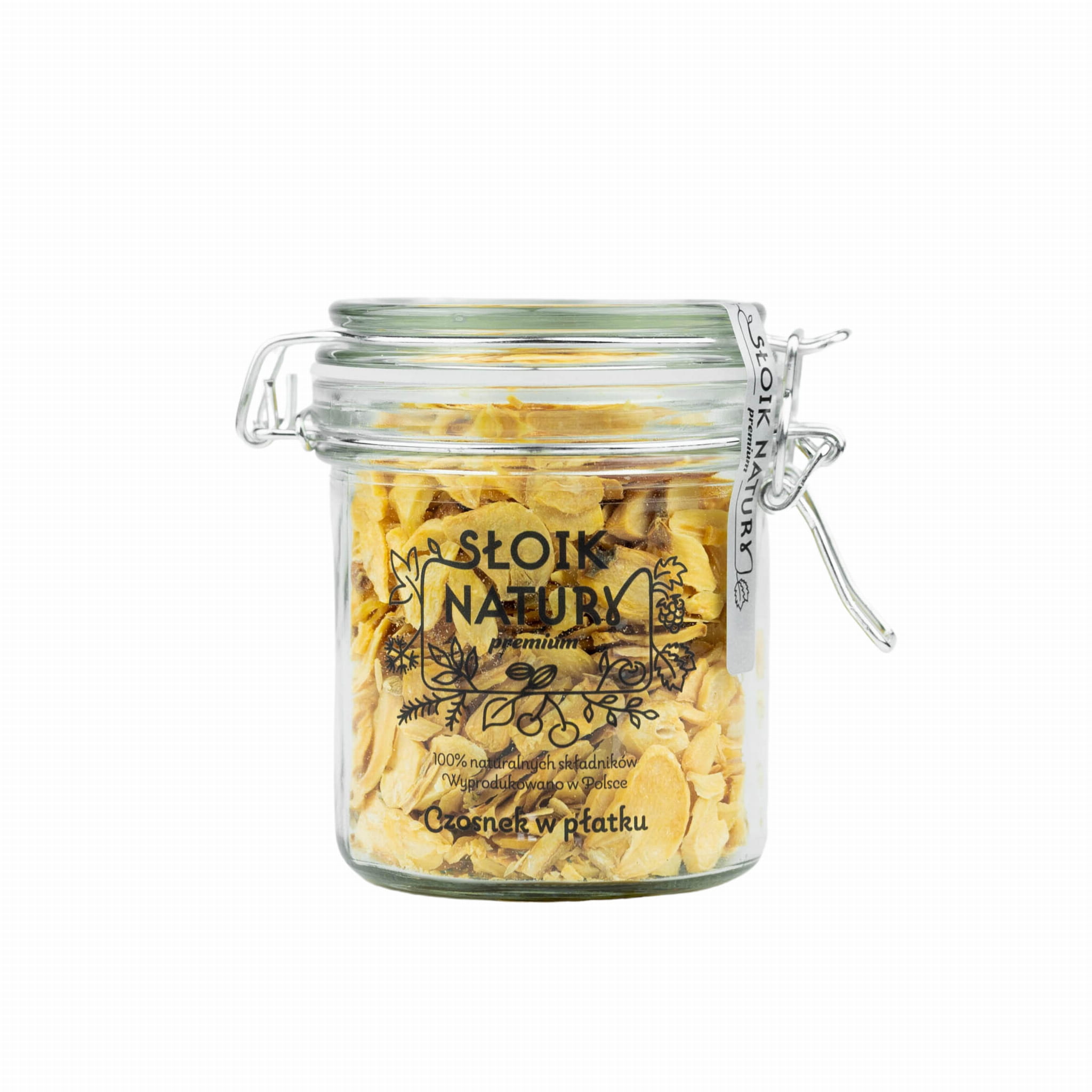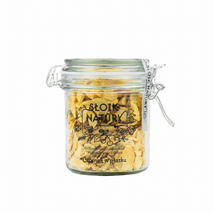 Naturalny, suszony czosnek o intensywnym zapachu i delikatnej strukturze.