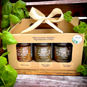 Zestaw trzech przypraw to połączenie domowych smaków, tradycyjnych receptur i ziół, które nadają potrawom wyjątkowego charakteru.