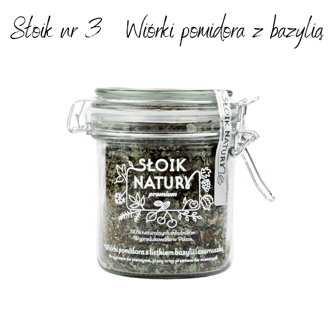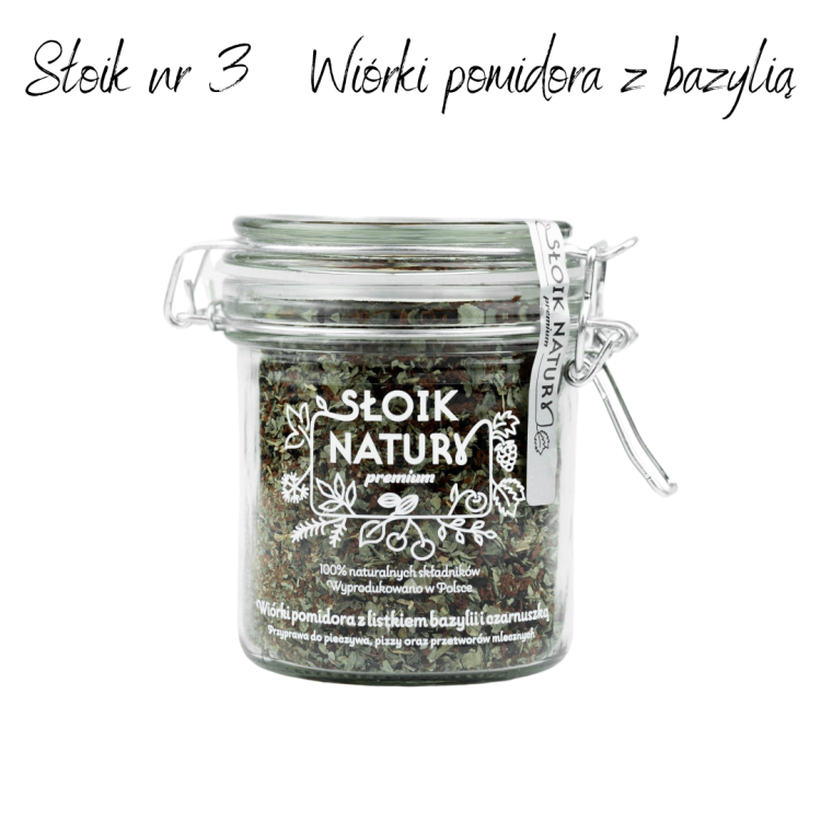 4. Słoik z klamrą nr 3 Wiórki pomidora z bazylią i czarnuszką 85 gram