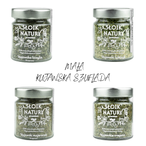 W zestawie znajdziesz aż 4 słoiczki pełne aromatycznych przypraw z serca Kujaw: