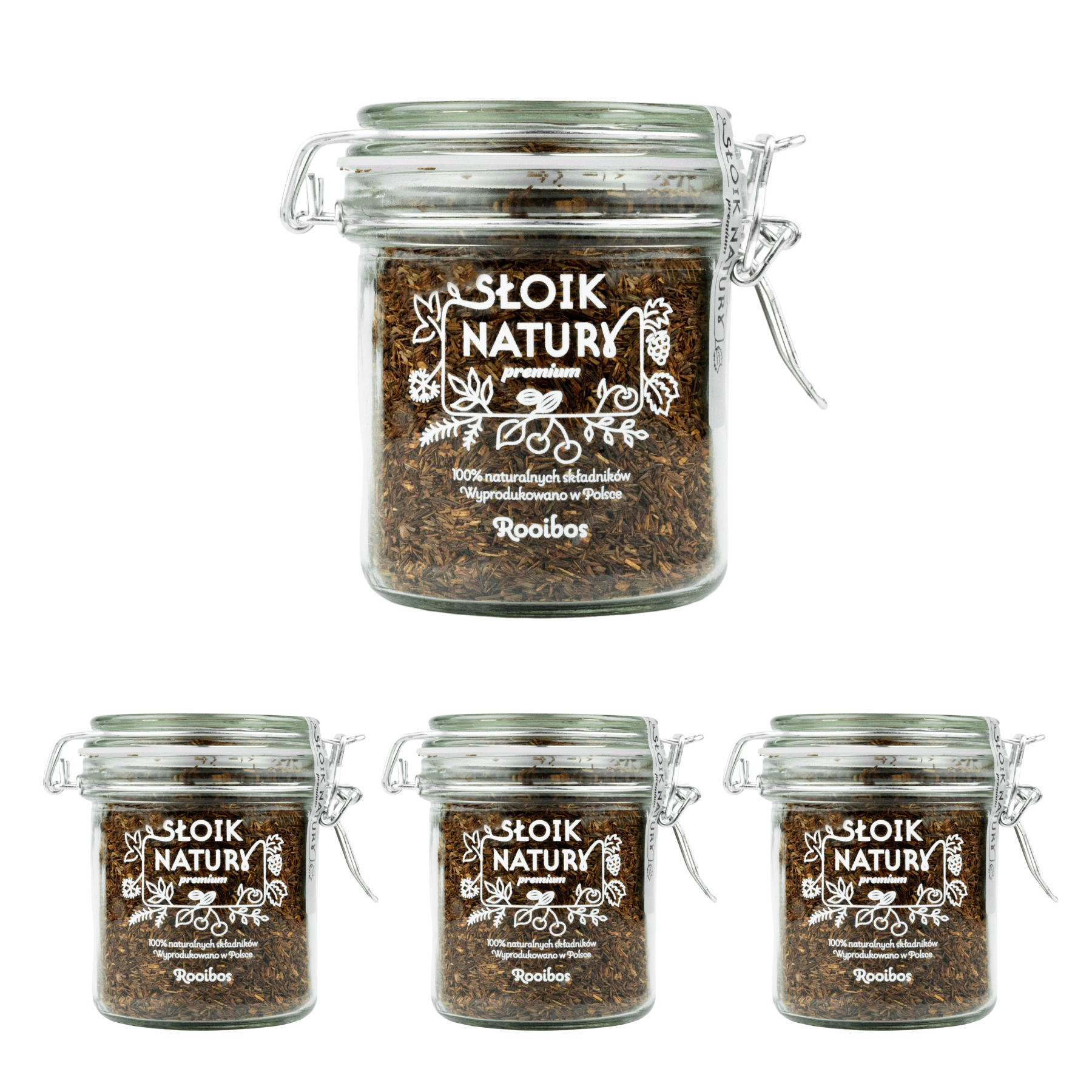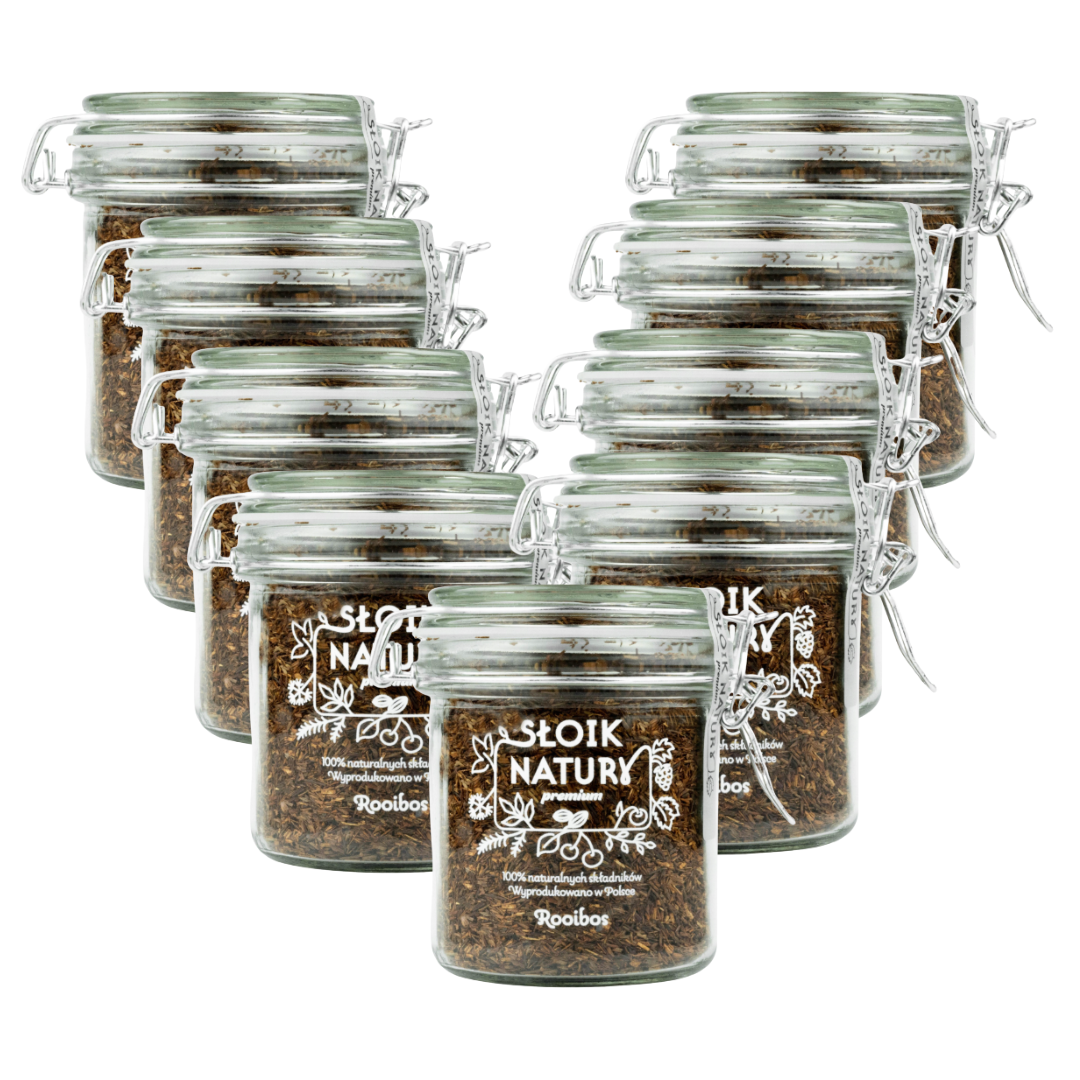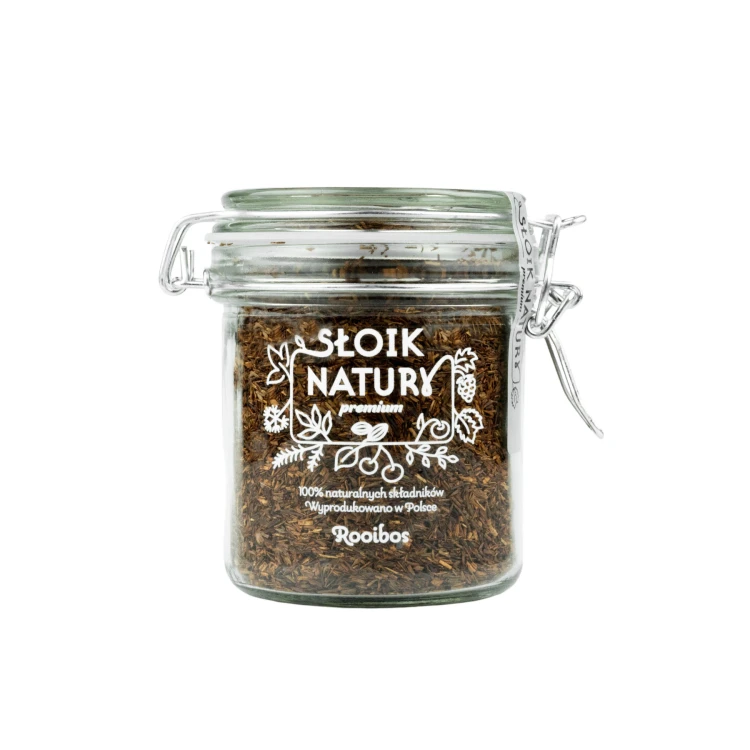 Wersja Rooibos od Słoika Natury to starannie wyselekcjonowany susz zamknięty w estetycznym, szczelnym szklanym słoiczku, który nie tylko chroni aromat, ale także pięknie prezentuje się na kuchennej półce.