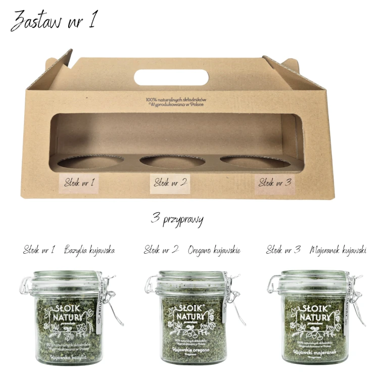 Zestaw nr 1 Prezentowy 3 słoiki - Bazylia, Oregano i Majeranek